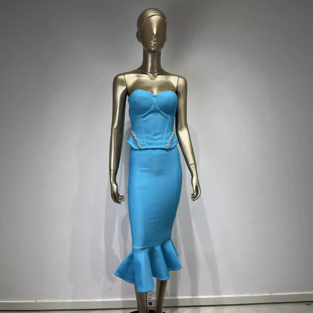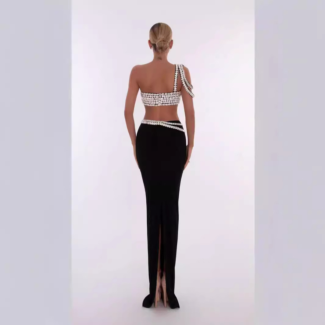 Goods number KH793 pattern Bronze Skirt Long skirt popular elements bandage Craft Rhinestone Listing year/season 2024 summer Fabric name knitting Main fabric component Polyester fiber (polyester) Main fabric component 2 Spanden brand Swato color black size XS, S, M, L Style Street tide Jacket Short top style Western style Set style Skirt Style Sexy hot…