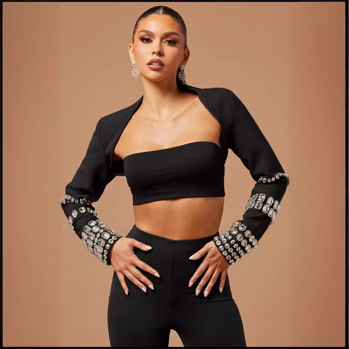 Goods number KE1172 pattern Bronze Jacket Short top Skirt Skirt popular elements Drilling chain Craft Bronze Listing year/season 2024 spring Fabric name knitting Main fabric component Polyester fiber (polyester) Main fabric component 2 Spanden brand Swato color black size XS, S, M, L Style Street tide style Western style Set style Skirt Style Sexy hot…