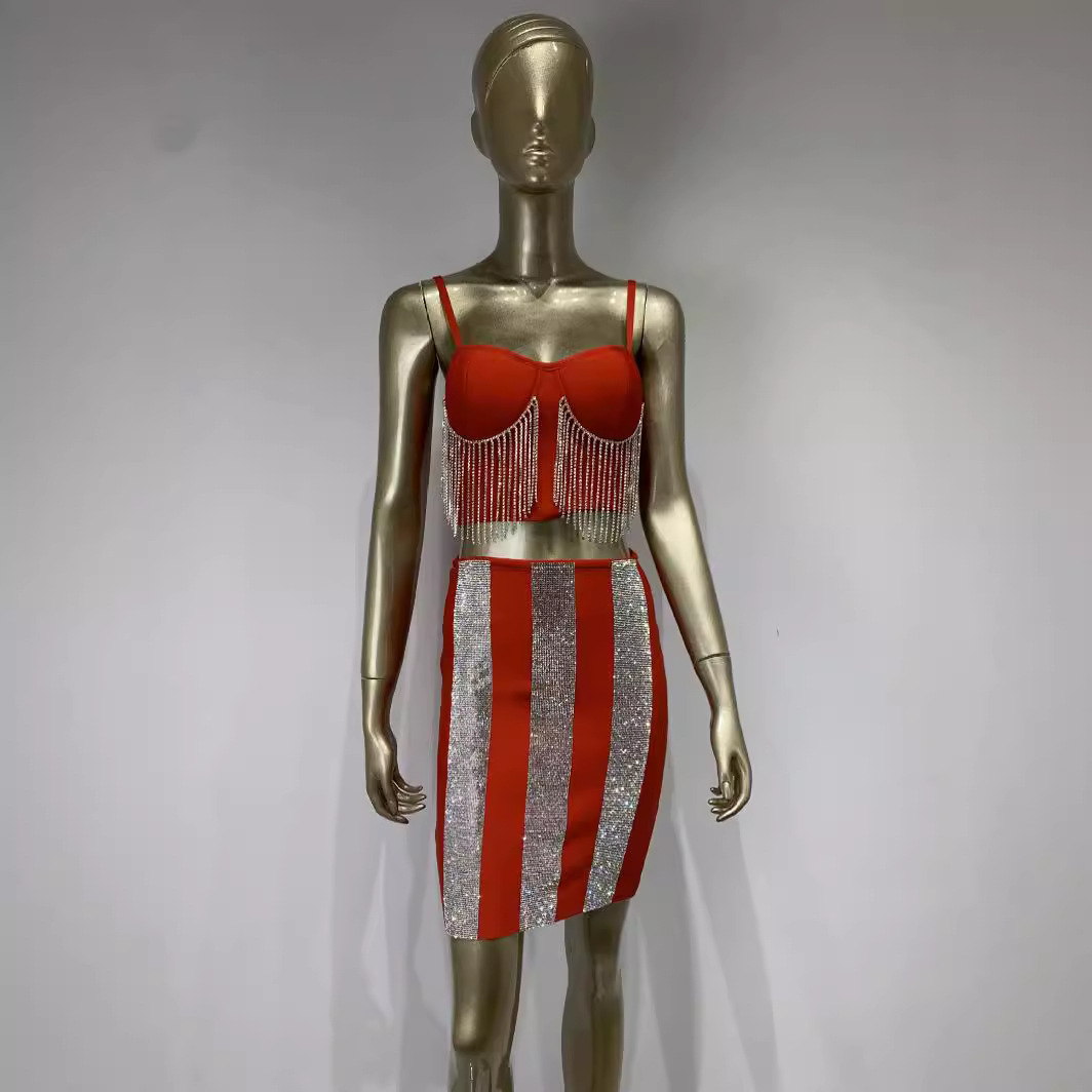 Goods number Kh711 pattern geometry Skirt Skirt popular elements bandage Craft none Listing year/season Spring 2023 Fabric name knitting Main fabric component Polyester fiber (polyester) Main fabric component 2 Spanden color red size XS, S, M, L Style Vitality style Urban style Set style Skirt Style Sweet and fresh Sleeve Type sleeveless Sleeve Length sleeveless…
