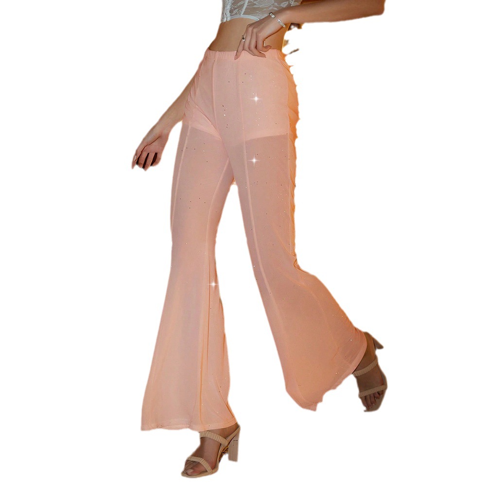 an sexy net yarn long pants explosion summer see -through vertical slimming crystal nightclub wild pants