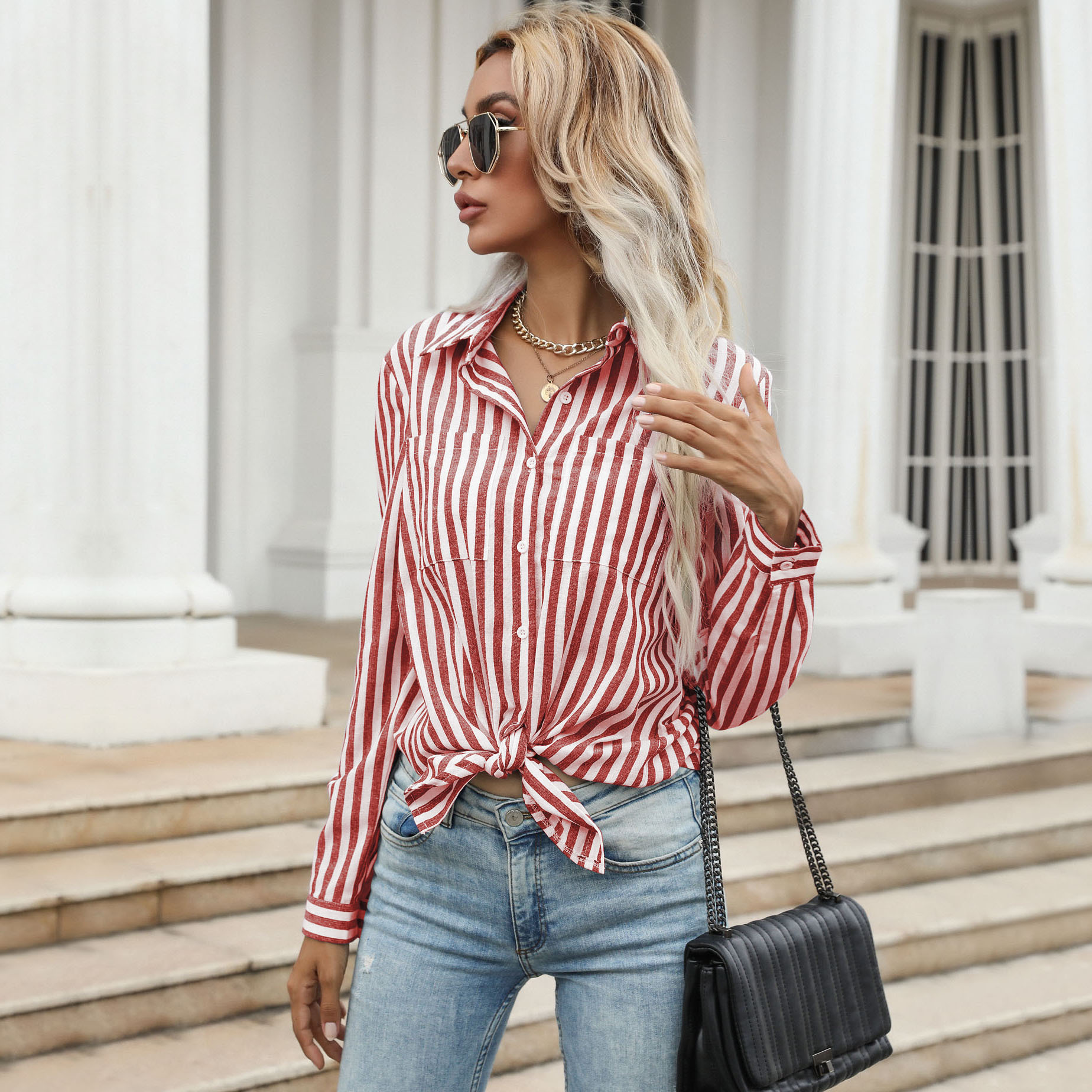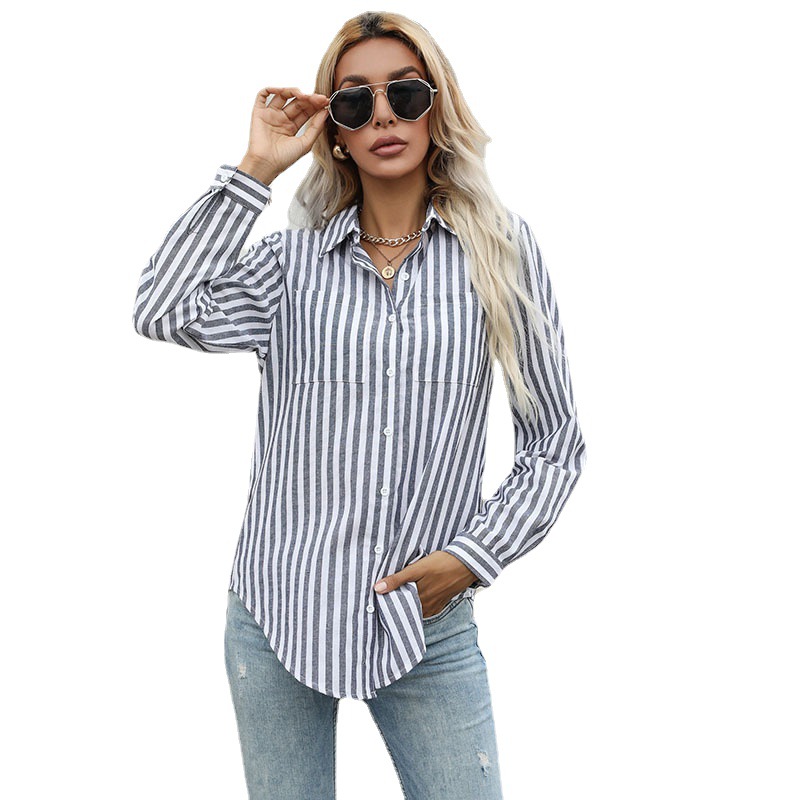 Be the first to review “Autumn new an button cardigan stripe striped shirt lapel shirt long -sleeved commuting shirt female”