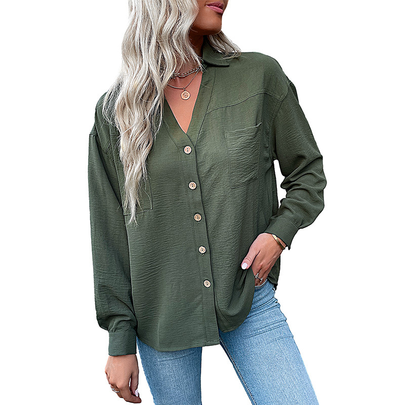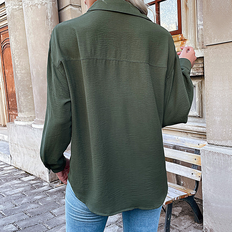 Autumn New an women’s pure color lapel pockets casual simple shirt women
