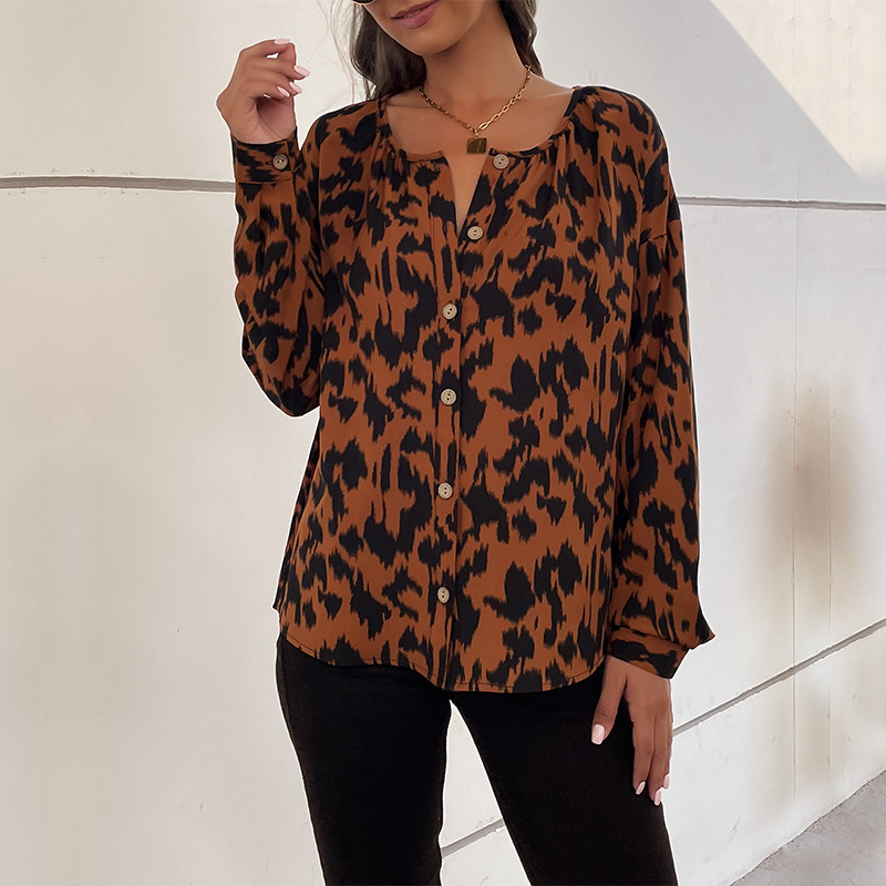 autumn winter new an diligence wind -style long -sleeved leopard design sense shirt women