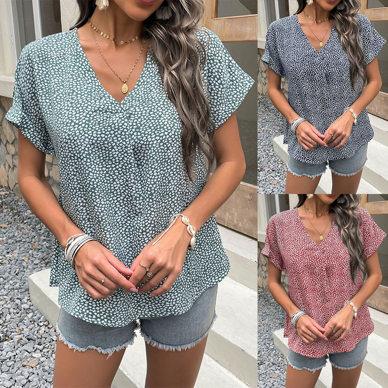 cargo New Summer an short -sleeved tops V -neck printed shirt female