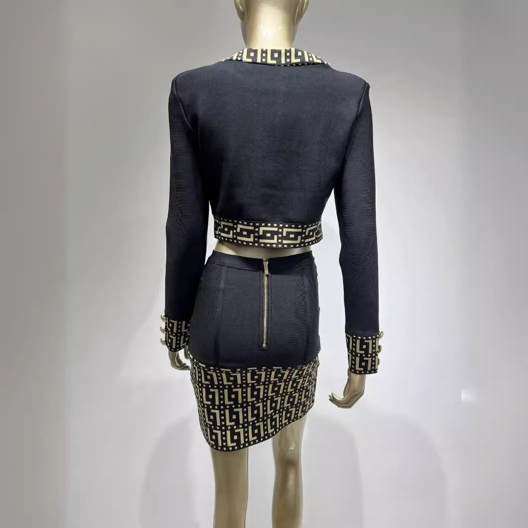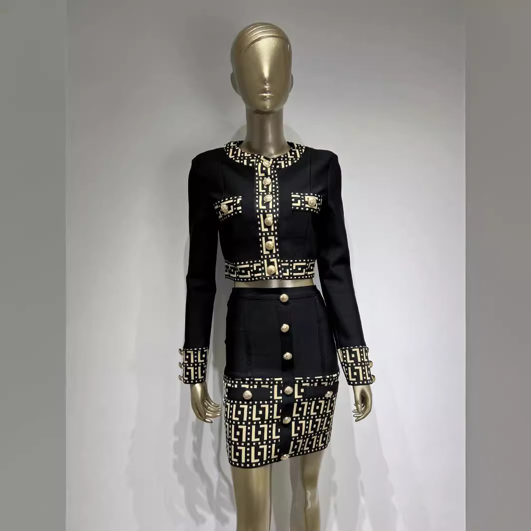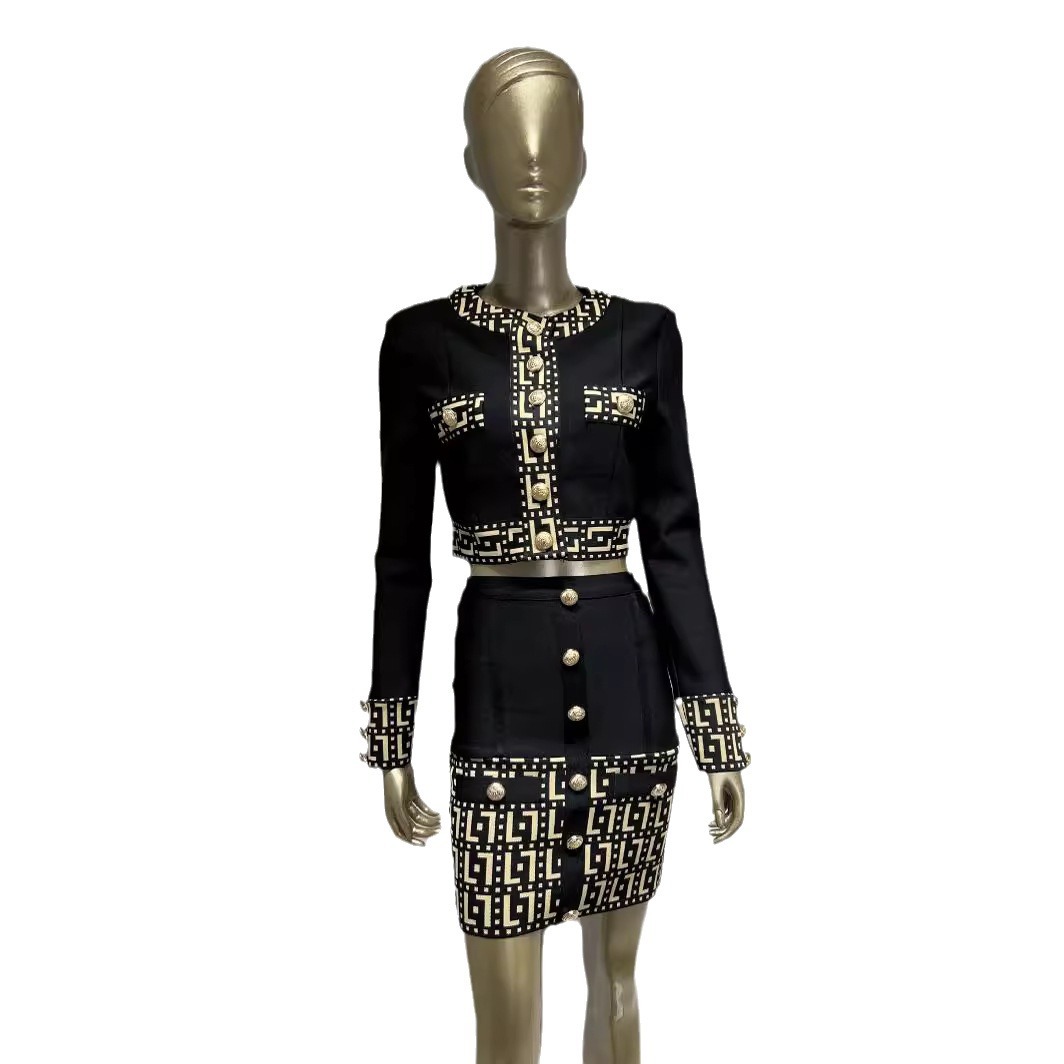 Expressing hot -selling bage bage two -piece an fashion Great Wall long -sleeved top high -waist short skirt set