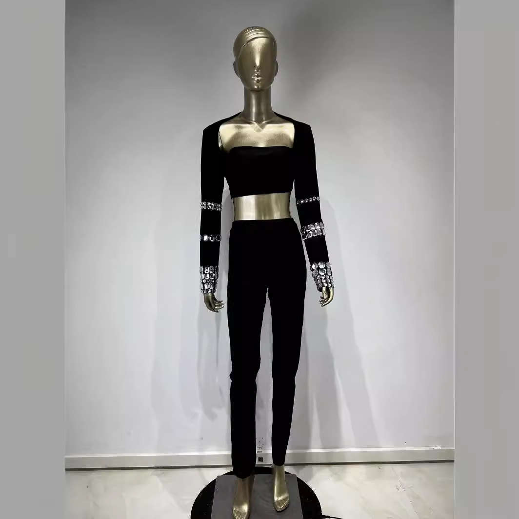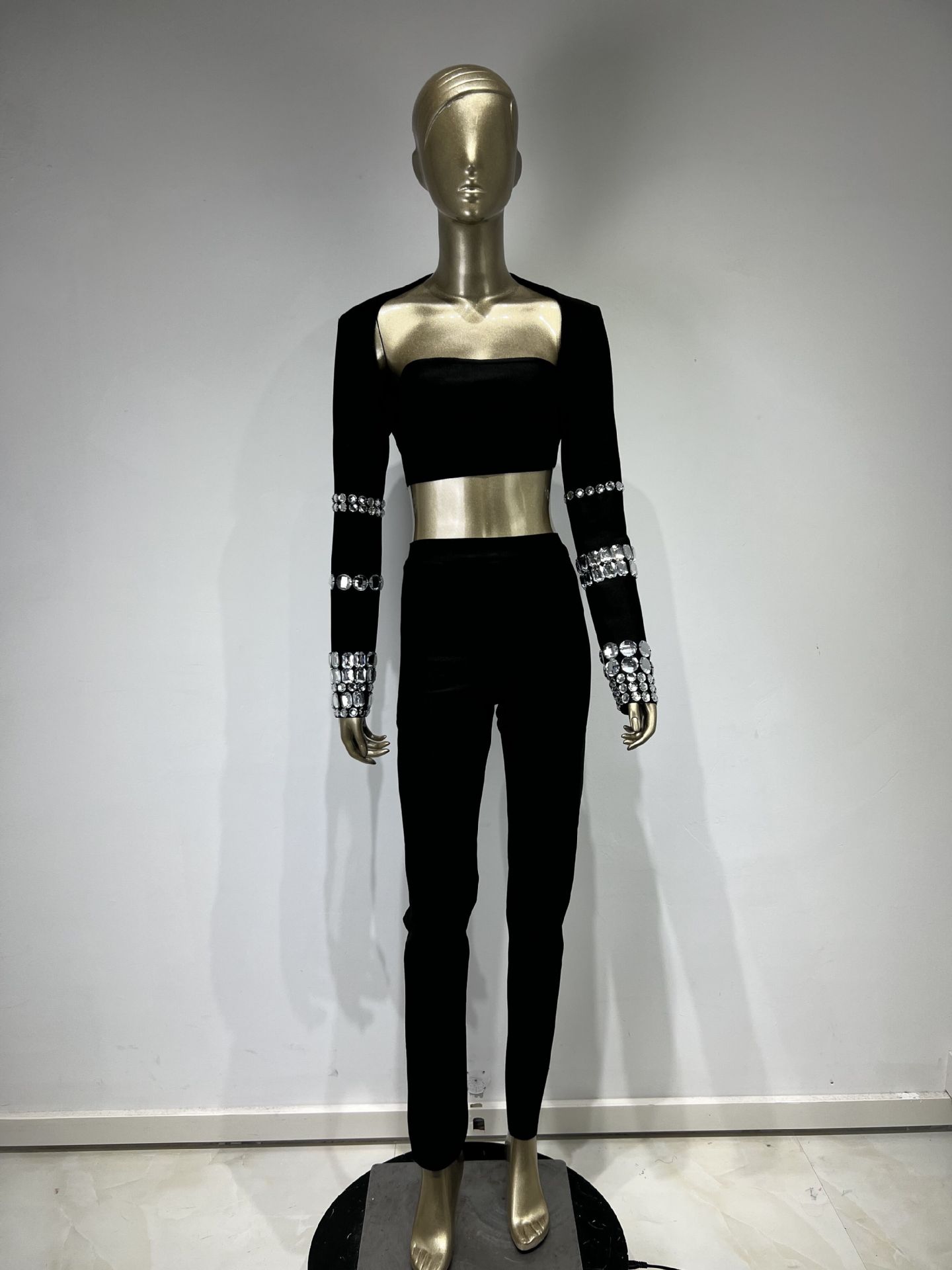 New product bage pants set explosion an fashion rhinestone three -piece high street party dress