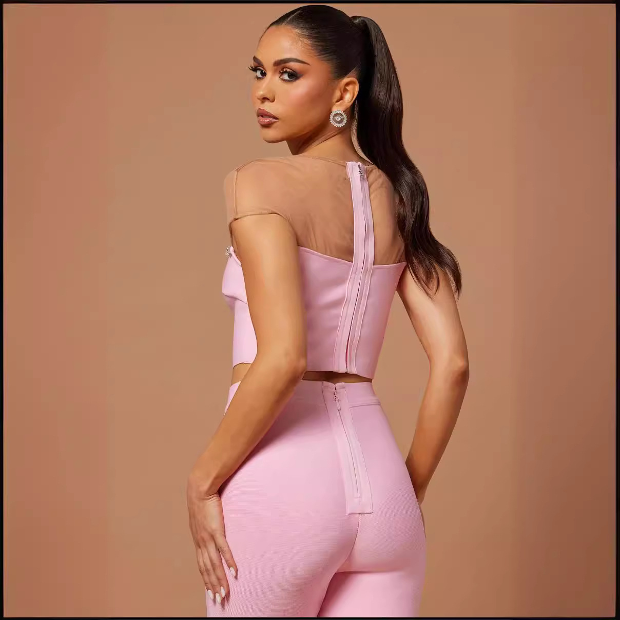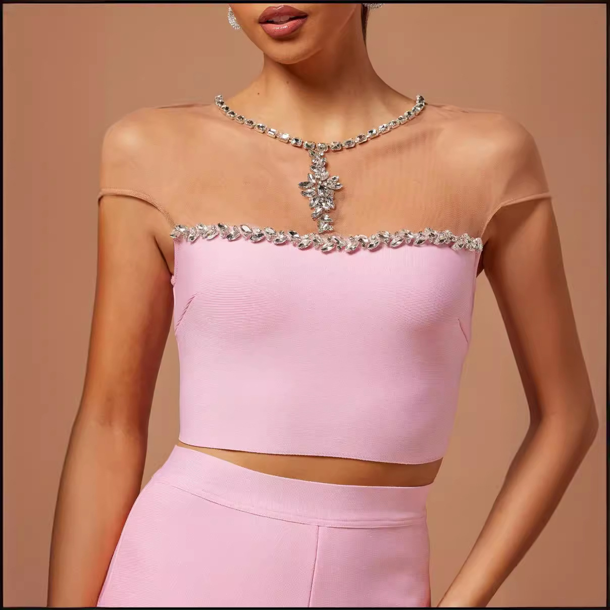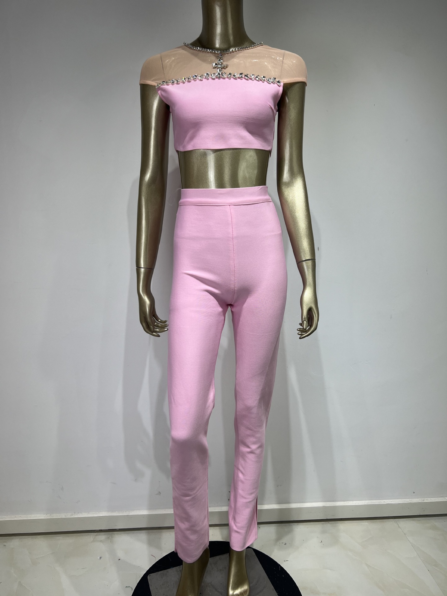 Be the first to review “New product explosion pink bage pants set an high street rhinestone top trousers two -piece suit”