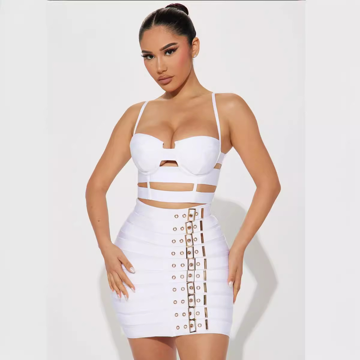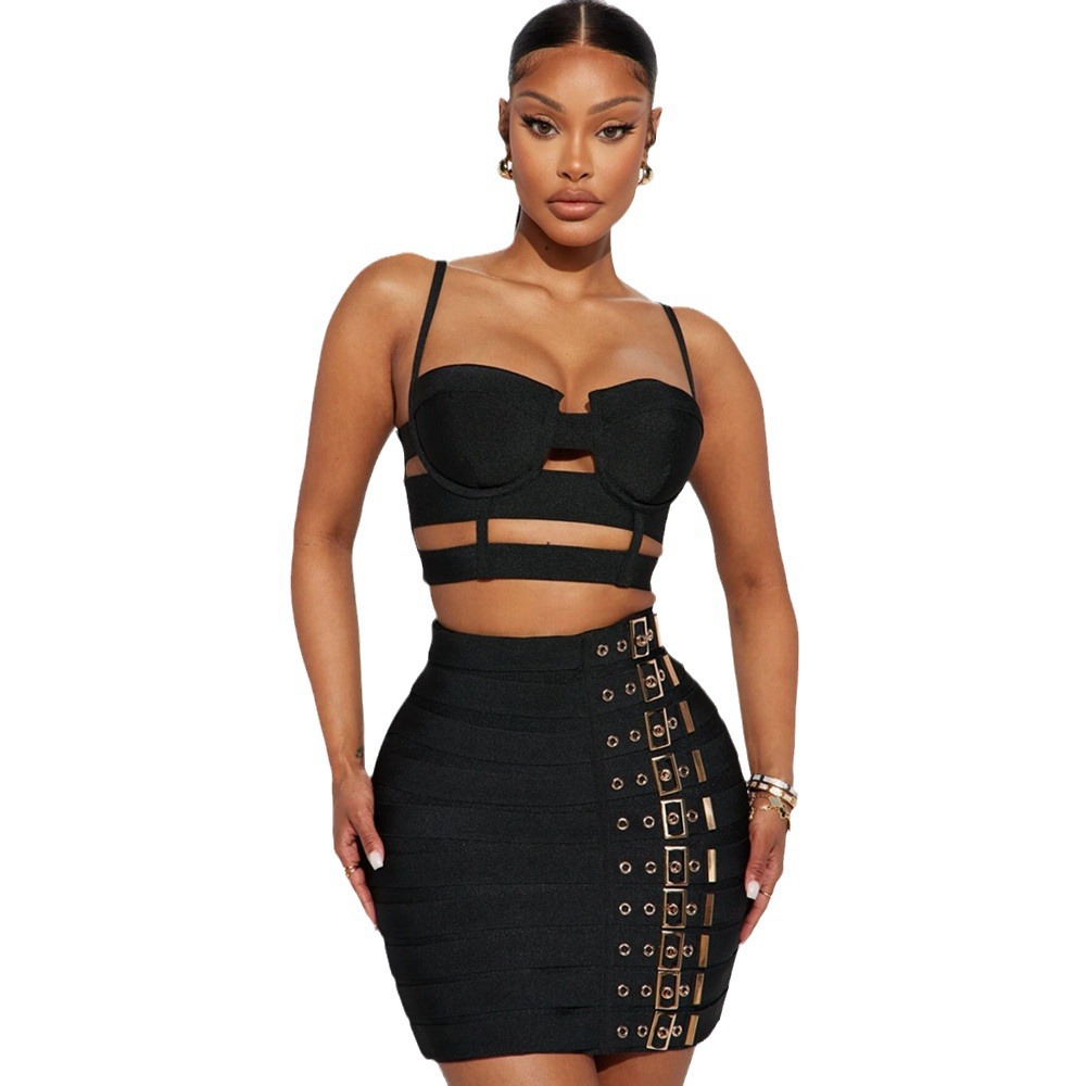 New product explosion punk bage skirt set an sexy suspenders half -body skirt nightclub suits