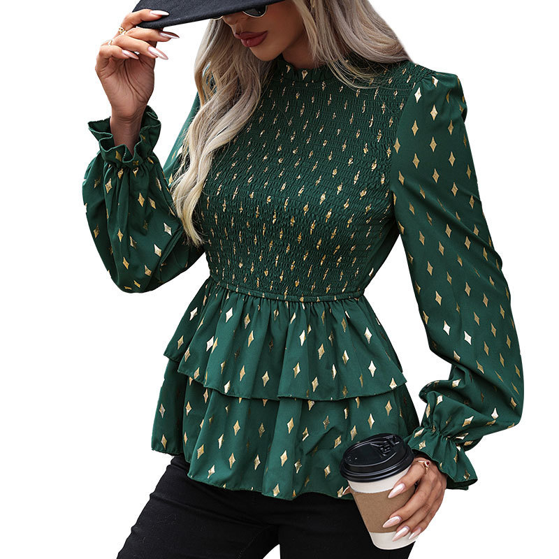 Perry Top Autumn New Women’s Clothing an Lotus Lottery Long -sleeved Stitch Shirts