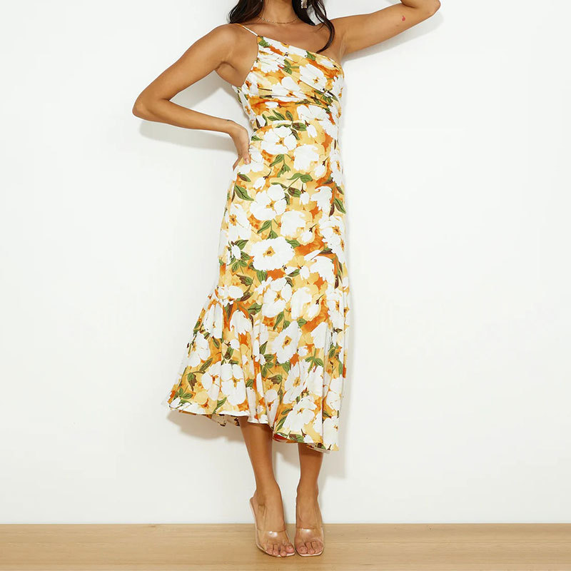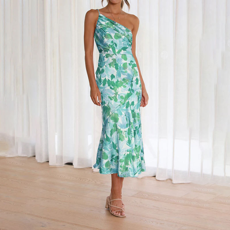 ‘s new an women’s clothing trendy stamp collar off -the -shoulder fishtail camisole dress