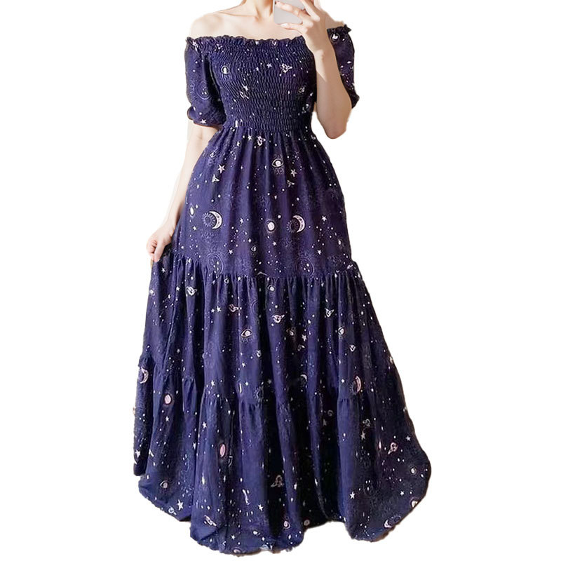 ‘s new summer an women’s outfit of off -the -shoulder princess skirt printing shoulders