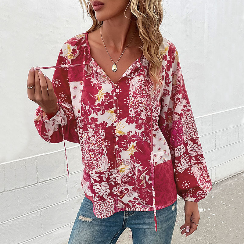 Spring Autumn Casual Printing Shirts Fashion an Women’s Clothing Circles Bottom sleeve women’s shirt