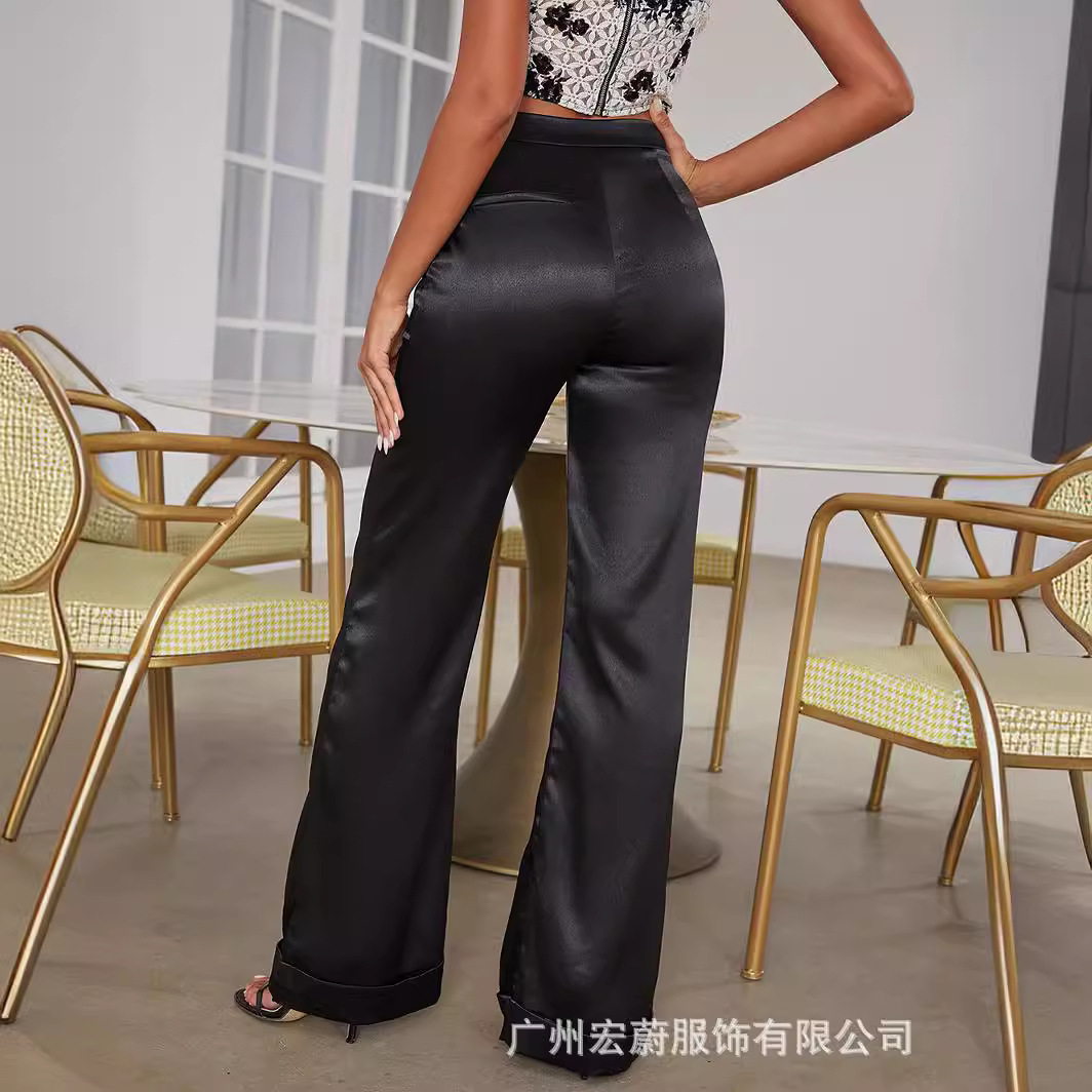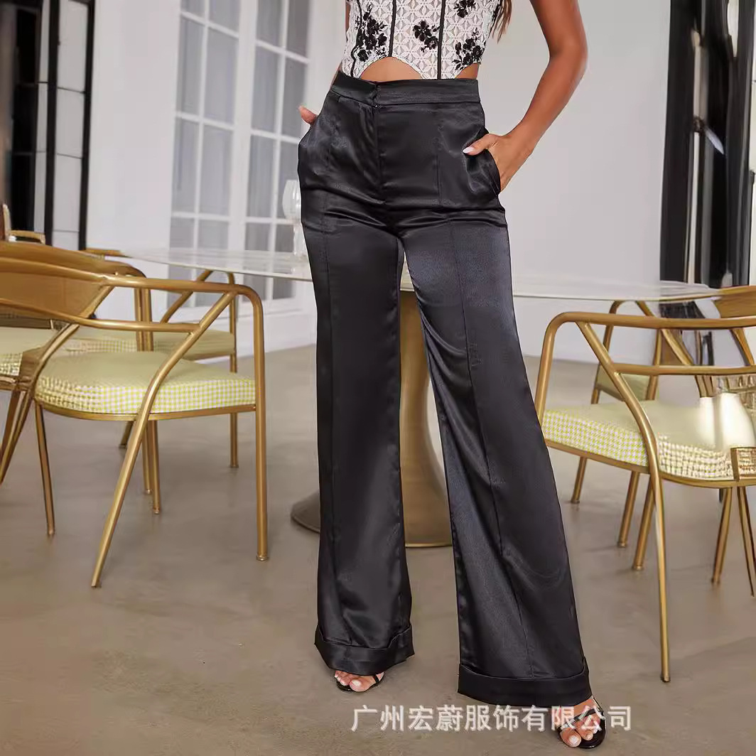 Spring summer new an women’s clothing fashion casual pants color diced pocket pocket microfudie loose trousers