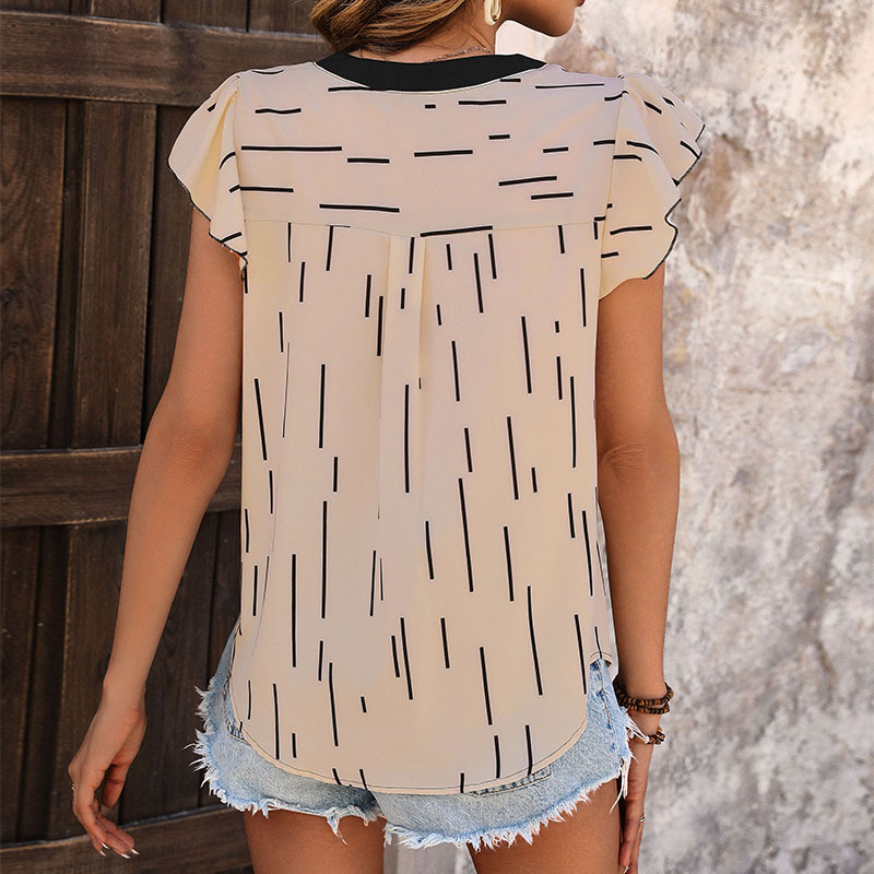 Summer contrasting stitching top an TIKTOK women’s clothing ruffled sleeve line pattern shirt