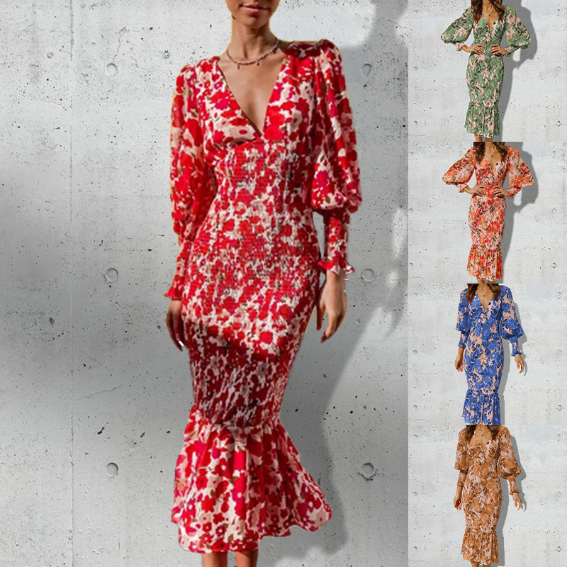 Be the first to review “Summer new Women’s an Mortar Fish Tail Skirt Temperature Slim Print Long Sleeve Dress”