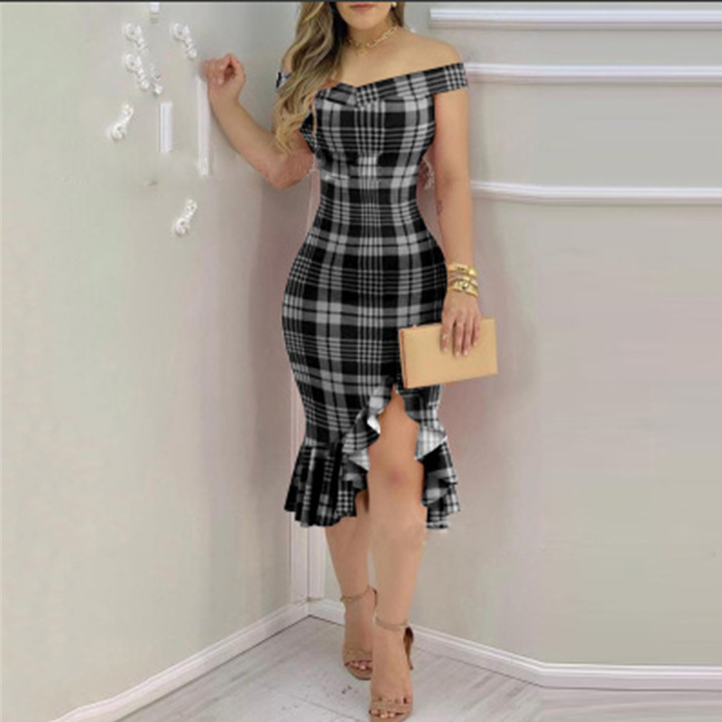 Wish the United States Independent Station Summer Women’s Women’s Words Shoulder Sexy Shoulder Ruffy Skirt